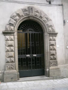 The semicircle of the round arch is always interrupted by the keystone which is the central element of the arch, placed so high and in the middle of the portal with a suitable surface for coats of arms, writings and decorations. All the portals rest on thresholds, also made of squared granite blocks and the arches are made of two single stone ashlars.